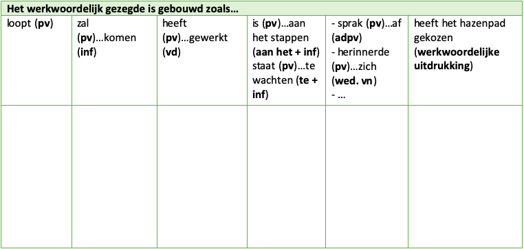 LET OP: soms komen er ook andere woorden dan werkwoorden voor in het werkwoordelijk gezegde.